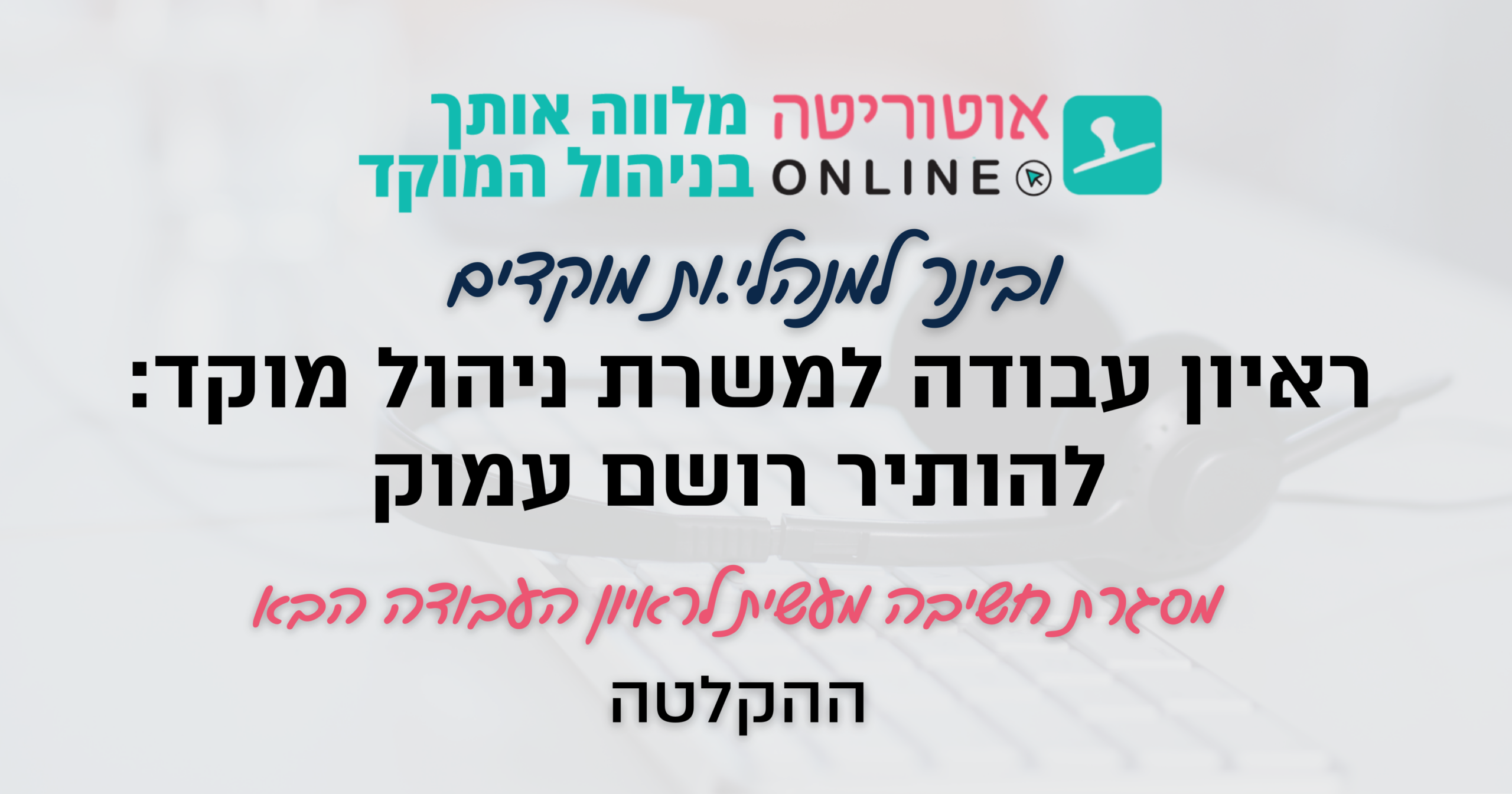 ✩ למנהלי מוקדים שרוצים לתקף ולדייק את יעדי המוקד בהתאמה לאופי הפעילות המשתנה